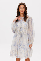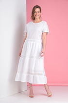 Платье полуприлегающего силуэта слегка зауженное к низу со смещенной застежкой на пуговицы и V-образным вырезом. Объемные карманы накладные с клапаном. Рукав втачной одношовный короткий. По низу платья, низу рукава и по поясу декоративные строчки. В комплекте пояс из основной ткани с застежкой на пряжку.