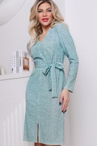 Платье шифоновое с подкладкой на юбке свободного силуэта, приталенное за счет резинки на поясе. Спереи декоративная застежка на воздушные петли и пуговицы. Воротник-стойка с рюшей. Рукав втачной, расширенный книзу, собран на резинку.