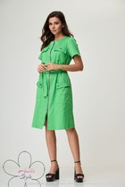Повседневное платье в стиле бохо, выполнено из искусственного льна-вишера. Струящаяся по фактуре ткань, благодаря свободному прилеганию, создает кокон оберегающий от зноя и палящего солнца. Короткий рукав, который можно регулировать хлястиком на пуговице. Ассиметричная, функциональная застежка переходит в драпирующийся карман, с противоположной стороны карман спрятан в боковой шов. По бокам изделия разрезы. Изделие может сочетаться как с кедами, босоножками, так и туфлями. Универсальность и практичность платья сделают его любимым в Вашем гардеробе в наступающем летнем сезоне. Длина по спинке 128 см, длина рукава 26 см. Изделие подойдет на рост 170 см