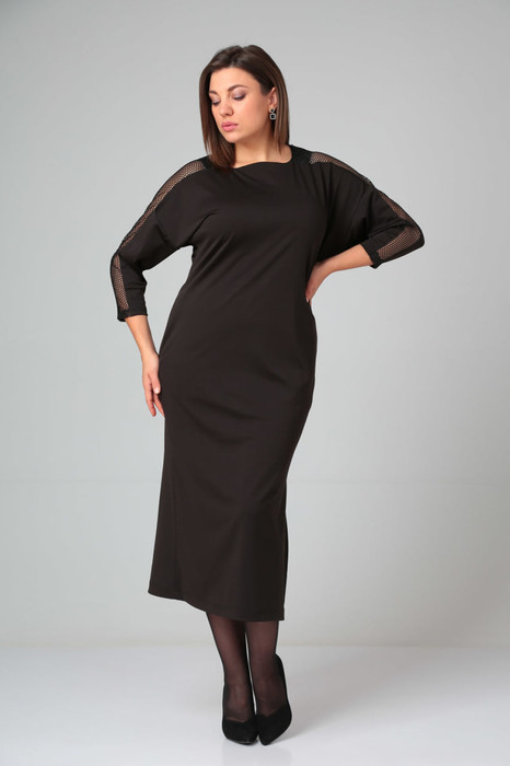 Эффектное, вместе с тем, прекрасно подходящее как для повседневной жизни, так и для торжества платье. Выполнено из трикотажа «микроскуба». Комфортный силуэт, который мягко сядет по фигуре. Полуприлегающее по бёдрам и достаточно свободное по груди, благодаря приспущенному рукаву длиной 7/8. Платье с прорезными карманами в боковых швах. Рукав украшен вставкой «сетка», также сбоку с одной стороны платье украшает разрез, что придает платью еще более изящный вид. Данное платье прекрасно сочетается с разными украшениями и разной по стилю обувью. Длина изделия по спинке 123 +-1 см, длина рукава от горловины 58 см. Изделие подойдет на рост 170 см.