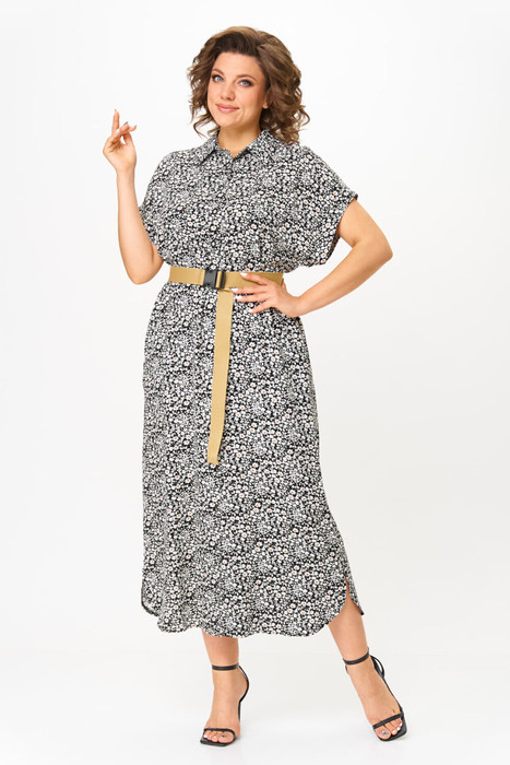 Платье рубашечного типа, свободного кроя - выполнено из мягкой приятной на ощупь ткани. Универсальность кроя и легкая ткань сделают его любимым изделием Вашего гардероба в летний сезон. По переду планка-застёжка на пуговицах к низу с разрезом, с боковыми разрезами, спинка удлиненная. Короткий цельнокроеный рукав приспущенный с отложенной манжетой. Благодаря встречной складке на спинке платье приобретает легкое и элегантное  клешение. Украшением платья служит декоративный принт. По желанию фиксируется поясом, который идет в комплекте. Это универсальное платье отлично подойдет для летних прогулок, встреч или повседневных образов. Добавьте его в корзину и создавайте стильные образы уже сегодня! Длина изделия по спинке от горловины 130 (+/-1) см. Изделие подойдет на рост 170 см.