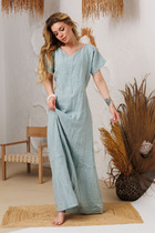 Платье рубашечного типа, свободного кроя - выполнено из мягкой приятной на ощупь ткани. Универсальность кроя и легкая ткань сделают его любимым изделием Вашего гардероба в летний сезон. По переду планка-застёжка на пуговицах к низу с разрезом, с боковыми разрезами, спинка удлиненная. Короткий цельнокроеный рукав приспущенный с отложенной манжетой. Благодаря встречной складке на спинке платье приобретает легкое и элегантное  клешение. Украшением платья служит декоративный принт. По желанию фиксируется поясом, который идет в комплекте. Это универсальное платье отлично подойдет для летних прогулок, встреч или повседневных образов. Добавьте его в корзину и создавайте стильные образы уже сегодня! Длина изделия по спинке от горловины 130 (+/-1) см. Изделие подойдет на рост 170 см.