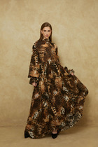 Нарядное платье полу-прилегающего силуэта, выполнено из плиссированной ткани и кружева. Горловина округлой формы, на обтачке, лиф платья отрезной по линии талии, выполнен из кружева, в качестве подкладки атлас. Юбка платья расклешенного силуэта, выполнена из плиссированной ткани, по линии талии аппликация из кружева. Спинка идентична полочке, отрезная по линии талии, верх из кружева, юбка из плиссировки, со средним швом и вытачками, в среднем шве потайная молния. Рукав втачной, расклешенный, оптимальной длины, выполнен из плиссировки. Эффектное, нарядное платье прекрасный выбор для торжественных мероприятий!