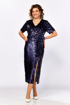 Нарядное платье, полу-прилегающего силуэта, выполнено из ткани в пайетки, на трикотажной подкладке. Лиф платья отрезной по линии талии, пояс втачной, горловина V-образной формы, обтачена подкладкой. Юбка платья прямого покроя, с разрезом по одной стороне. Спинка из пайеток, рукав втачной, укороченный, из пайеток, по линии талии на полочке декор в виде съемного цветка ручной работы. Эффектное, стильное платье выполненное из пайеток прекрасно дополнит ваш образ!