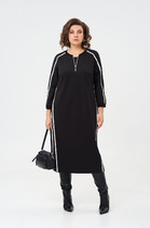 Платье полуприлегающего силуэта. Перед с нагрудными вытачками. Спинка со средним швом, заканчивающимся шлицей. Рукава втачные одношовные. Горловина обработана бейкой из основной ткани. Дополняет модель пояс.