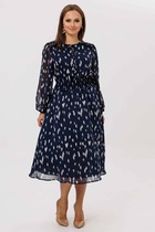 Платье свободного силуэта с подрезом ниже линии бедер. Перед с кокеткой. Горловина обработана рюшей и завязками. Рукав одношовный, заканчивающийся манжетой на венгерке. По окату рукава сборка. Платье на подкладке. Дополняет модель пояс.