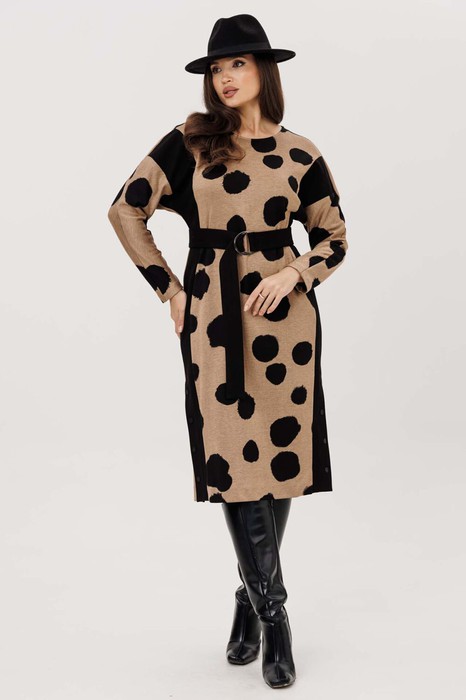 Совместные покупки Каменск-Уральский Женская одежда Платья — Платье MisLana 1238 бежевый с черными кругами