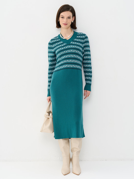 Платье NewVay 9252-92055 изумруд/морская бездна/т.синий/белый