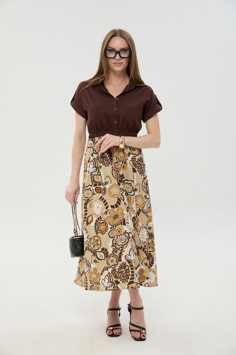 Платье NIKVA н1050-2 шоколад и шоколадный мультиколор