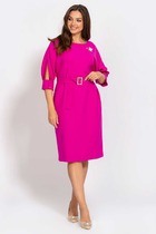 Эффектное двубортное платье длиной миди из экокожи на хлопковой основе полуприлегающего силуэта. Линия плеча приспущена, рукав втачной три четверти с манжетой и патой. Горловина обработана обтачкой с  V-образным вырезом. Линия талии акцентирована притачным поясом. Имеются карманы в боковых швах. Изделие застёгивается на кнопки. Без подкладки.