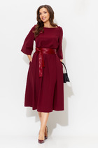 Уютное трикотажное платье полуприлегающего силуэта с фигурным вырезом. Верхняя часть переда лифа (горловина) обработана обтачкой, в средней части лифа переда — фигурный вырез V-образной формы. Рукав фасона полуреглан. Длина изделия — миди. Изделие без подкладки.