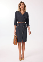 Платье длиной миди, отрезное по линии талии.По переду нагрудные вытачки переведены в талиевые. Лиф спинки со средним швом, талиевыми и плечевыми вытачками, выполнен из костюмной ткани, по бокам декорирован отделочной тканью. Юбка со складками на линии талии, расширена к низу. В среднем шве спинки застежка на потайную молнию. Горловина обработана обтачкой. Рукава широкие, втачные,одношовные. По окату рукава заложены мягкие складки. Рукава,бочок лифа и юбка платья выполнены из шифона.