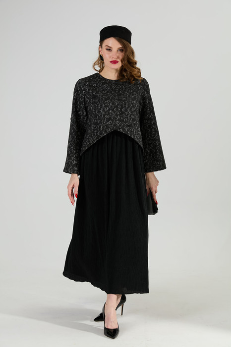 Платье NIKVA н740-22 графитовая абстракция и чёрный
