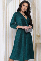 Комплект состоит из двух платьев: верхнего и нижнего. Платье верхнее свободного объёма, расклешенное к низу, с цельнокроеным рукавом, длиной макси. По переду и спинке, на линии талии настрочена кулиска для регулировки объема и формирования сборки с помощью шнура. Рукав цельнокроеный короткий с углубленной проймой. Плечевой шов дополнен кулиской для формирования сборки с помощью шнура. Шнур выведен наружу со стороны низа рукава. Вырез горловины имеет круглую форму, обработан обтачкой. Нижнее платье комбинация на регулируемых бретелях.