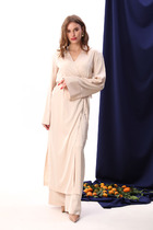 Платье женское, полуприлегающего силуэта, зауженное к низу, выполнено из костюмно- плательной ткани и гипюра, длина по среднему шву спинки 48-52 размер - 102 см; 54-62 размер - 104 см. Перед и спинка платья с настроченным гипюром, с фигурным низом, направленным от бокового шва вниз к центру. Перед с нагрудными вытачками из проймы. Спинка с талиевыми вытачками и средним швом, в котором обработана шлица. Застёжка на потайную тесьму -"молнию" расположена в левом боковом шве. Вырез горловины переда и спинки округлой формы, по переду углубленный. Рукава втачные, одношовные из гипюра. Низ рукава оформлен фестонами. Длина рукава 48-52 размер - 26 см; 54-62 размер - 33 см. Платье с плечевыми накладками.