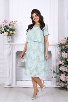 Платье женское А силуэта, выполнено из хлопкового гипюра. Модель на хлопчатобумажной подкладке, без застежки и плечевых накладок. Перед платья отлетной, с нагрудными вытачками, направленными от пройм. Под отлетным лифом, к подкладке пришита нижняя часть платья. Горловина по спинке округлая, по полочке углубленная округлая. Рукав втачной, короткий. Длина платья – 105 см; длина рукава – 23 см.
