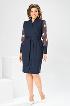 Платье полуприлегающего силуэта с втачными рукавами и рубашечным воротником. Перед с застёжкой на петли и пуговицы по планке. Пояс в комплекте. Перед платья и воротник декорированы дизайнерской вышивкой.