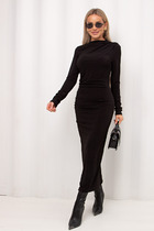 Стильное трикотажное женское платье из мягкого трикотажного полотна, модель полуприлегающего силуэта, со спущенным рукавом. В боковых швах присутствуют карманы. Перед и спинка декорированы дизайнерской вышивкой.