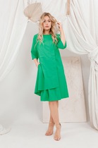 Нарядно-повседневное платье на все случаи жизни из трикотажного полотна. Прямого силуэта. С асимметричной линией низа, длиной чуть ниже колена. Рукав длинный. Модель украшена съемной брошью. В этом эффектном платье вы будете чувствовать себя неотразимой и точно не останетесь незамеченной.