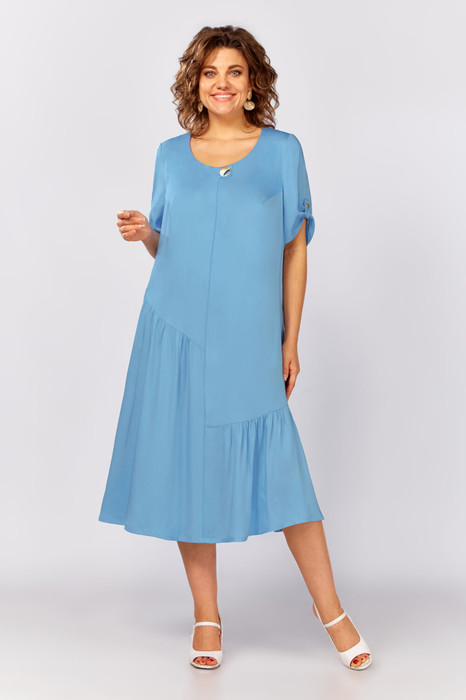 Одно платье длины миди на все случаи жизни? Да! Наше стильное летнее платье можно носить как праздничное, а потом с легкостью трансформировать его в повседневное. Шикарно смотрится как с туфлями на каблуке, так и с кедами. Меняйте свой образ в зависимости от настроения! Платье прямого силуэта расширенного к низу выполнено из натурального вискозного полотна. На полочке и спинке обработаны асимметричные друг другу воланы. По центру переда проложен кант. На горловине полочки обработана планка, которая декорирована пуговицей. Рукав длиной до локтя. На рукаве обработана пата на петлю и пуговицу.