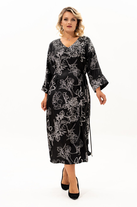 Для всех модниц в поисках комфорта женское платье - кимоно свободного и одновременно приталенного силуэту, виртуозно подчеркнёт все Ваши достоинства и скроет недостатки. При производстве этого платья использовалась очень красивая, атласная , струящаяся ткань. Спинка со средним швом.  Не менее оригинально выглядит перед платья, на котором  есть рельефы от плечевых швов, талевые выточки, которые застрочены на лицевую сторону. V - образный вырез горловины делает этот образ ещё более женственным и привлекательным. Пояс расположенный на талии и проходит через кулису спинки и петельки на талевых выточках. Линия плеча  спущена. Широкие рукава с манжетам по низу добавляют образу уникальность. Это нежное слегка расширенное к низу платье выполнено в молодёжном стиле, будет замечательно смотреться на женщине любого возраста. Модное, лаконичное платье станет неотъемлемой частью вашего гардероба.