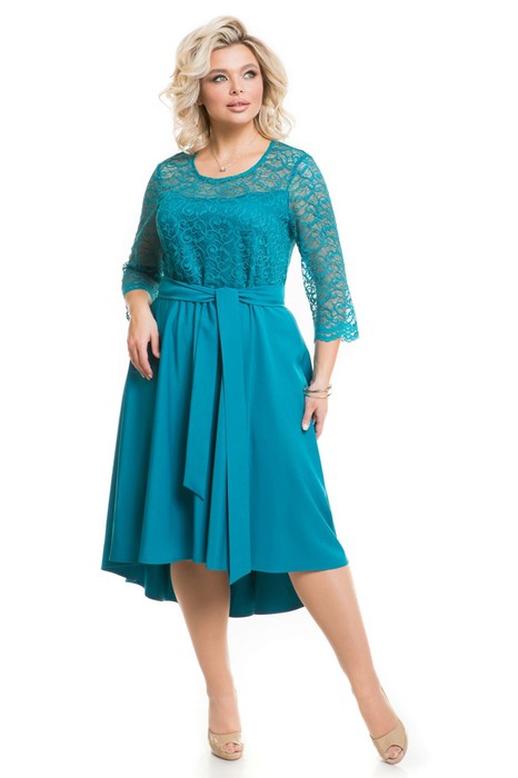 Элегантное нарядное платье полуприлегающего силуэта со съемным поясом. Платье отрезное по линии талии. Верх платья комбинированный из основной ткани и кружевного полотна. Круглый вырез горловины переда обработан настрочной окантовкой. Рукав втачной длиной 3/4, выполнен из кружевного полотна с фестонами по низу. Длина рукава от плечевой точки в 46 р-ре – 42 см. в 58 р-ре – 46 см., ширина рукава по низу в 46 р-ре – 28 см. в 58 р-ре – 34 см. Юбка полу-солнце с разно-уровневым низом. Спинка длиннее переда на 15 см. Платье без подклада и застежек. Длина изделия по середине спинки в 46 р-ре – 115 см. в 58 р-ре – 120 см.