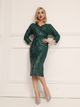 Нарядное платье силуэта «бочонок» выполнено из эластичного трикотажного полотна с люрексом. Перед и спинка платья целые. Овальный вырез горловины переда и горловина спинки обработаны обтачками. Платье с удлиненной линией плеча и свободной проймой. Рукав втачной, длиной 3/4 зауженный к низу. Длина рукава от горловины в 48 р-ре – 65 см. в 64 р-ре – 69 см., ширина рукава по низу в 48 р-ре – 18 см. в 64 р-ре – 24 см. Платье без застежек и подклада. Длина изделия по спинке в 48 р-ре – 93 см. в 64 р-ре – 103 см.