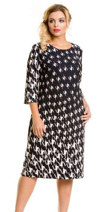 Элегантное платье полуприлегающего силуэта, выполнено из эластичного трикотажного полотна Оттоман. Перед и спинка целые по спинке две вертикальные вытачки. Овальный вырез горловины обработан обтачкой. Рукав втачной длиной 3/4 слегка зауженный к низу. Платье без подклада иВ В застежек. Длина изделия по спинке в 46 р-ре – 103 см.