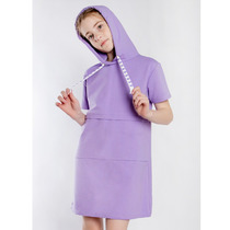 Платье приталенного силуэта из трикотажной ткани с небольшим начесом. Рукав втачной, узкий. Полочка укороченная, спинка удлиненная, в боковых швах разрезы. Платье с капюшоном, в капюшон вставлены длинные уши. Полочку украшает шелкография. Ткань мягкая, хорошо пропускает воздух и удерживает тепло.