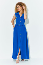 Платье женское из струящейся ткани для повседневной носки. Платье прямого силуэта. Перед имеет две нагрудные вытачки. Спинка со средним швом и потайной застежкой-молнией в шве. Горловина округлая. Рукава втачные длинные. Для придания формы в области талии имеется пояс с декоративным клапаном. Длина платья макси. Очень изящное платье, которое обязательно украсит его обладательницу. В данном платье вы будете чувствовать себя комфортно, а главное в нем вы будете безупречны.