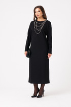 Платье-трапеция из экокожи. Детали: свободный силуэт, завышенная отрезная линия талии, нагрудные вытачки, рукава втачные длинные со сборкой по низу, высокие притачные манжеты с застежкой на пуговицы и навесные петли, потайная застежка-молния по спинке, карманы в швах