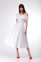 Корсетное платье длины миди. Детали: прилегающий силуэт, перед и спинка с рельефными швами, рукава короткие пышные с резинкой, застежка на потайную молнию в среднем шве спинки, платье на подкладке.