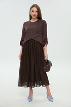 Длина платья по боковому шву около 62,5 в размерах 40-46 и около 66 см в размерах 48-52, длина юбки платья около 42,5 в размерах 40-46 и около 45,5 см в размерах 48-52. Длина рукава по внутреннему шву около 55 см.