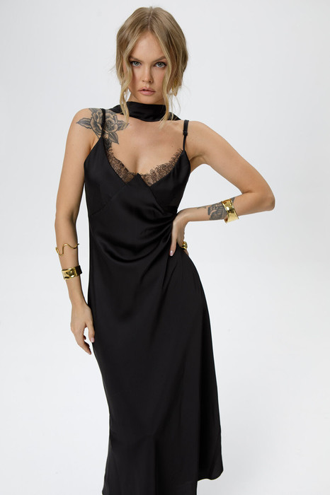 Платье-комбинация с фигурным лифом и кружевом, скроенное по косой.