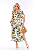 Платье прямого силуэта, слегка заужено книзу из плательной ткани.