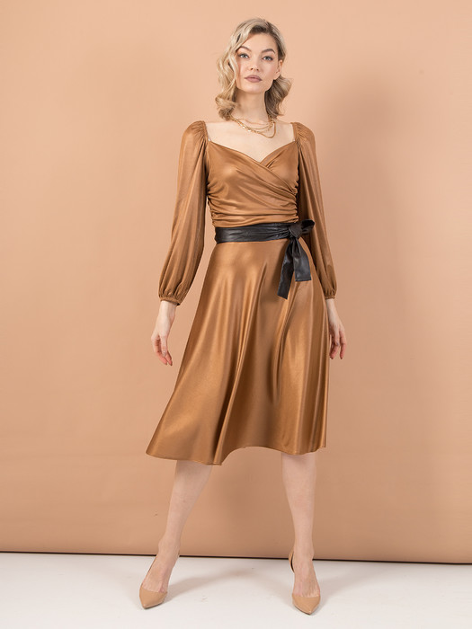 Модель отрезная по линии талии. Рукав со сборкой на резину по окату и низу. Пояс в комплект не входит.