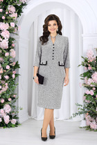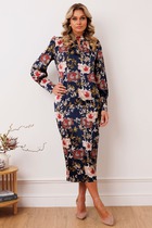 Платье прилегающего силуэта в длине миди. Горловина округлой формы с вырезом «капля». На лифе обработан декоративный узел с подрезом под линией груди. Рукава длинные втачные.