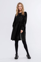 Женское платье, предназначено для повседневной носки. Платье женское, А-силуэта, длиной до середины икры. Перед с отрезной кокеткой из отделочной ткани, с 2-мя нагрудными вытачками. Спинка с отрезной кокеткой из отделочной ткани. Низ платья с приточным воланом с лёгкой сборкой по верхнему срезу. Горловина "О"-образная обтачная, без воротника. Рукав втачной, короткий, одно шовный с декорированным вырезом на окате, с кулиской из отделочной ткани, собранной на эластичную тесьму по верхнему срезу. Платье на контрастной подкладке. Платье без плечевых накладок. Длина спинки платья 103 см, длина рукава 30 см.