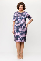 Платье женское относится к нарядной торжественной одежде. Платье женское отрезное по линии талии, расширенное к низу, длинное. Верхняя часть переда с 2-мя нагрудными вытачками, нижняя часть цельнокроеная. Верхняя часть спинки с 2-мя таллиевыми вытачками, с обработанным разрезом по головине, фиксирующимся на 1-ну навесную петлю и 1-ну пришивную пуговицу; нижняя часть спинки цельнокроеная. Горловина круглая, обточная, без воротника. Рукав втачной одно шовный, длинный. Рукав со сборкой по окату. Низ рукава собран на эластичную тесьму. Платье на подкладке. Платье без плечевых накладок. К платью прилагается съёмный пояс. Длина спинки платья 137 см, длина рукава 55 см.