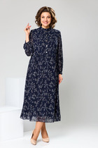 Двубортное платье из костюмной ткани на подкладке. По переду платья - нагрудные вытачки, по спинке - рельефы. Бочки, смещенные к переду, делают удобным расположение карманов в швах. Воротник - отложными лацканами пиджачного типа. Рукава - двухшовные, длинные, со шлицей и 2 пуговицами. Жакет застегивается на 2 основные пуговицы, 1 потайную, остальные пуговицы несут декоративный характер. Платье украшает цветок ручной работы.