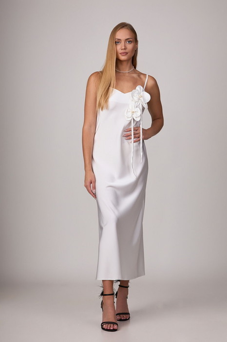 Роскошное платье-комбинация из атласа. Крой выполнен по косой, что обеспечит великолепную посадку на фигуре. Бретели  регулируемые. Платье дополнят цветы из атласа ручной работы.