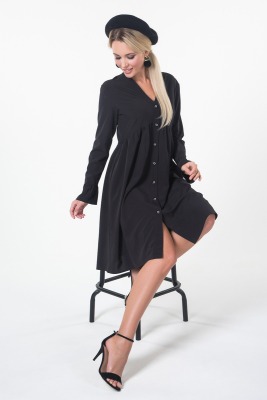 Красивое платье А - силуэта из легкой ткани "Ниагара", V-образная горловина переходящая в планку с застежкой на пуговицы. Модель отрезная выше линии талии, юбка на сборке. Длинные втачные рукава оканчиваются притачной манжетой на сборке. В боковых швах расположены функциональные карманы. Низ ровный, без разрезов.