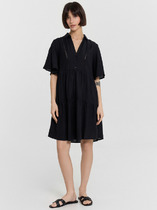 Платье женское свободного силуэта, с втачным рукавом. Перед с нагрудными выточками. Спинка с застежкой на молнию в среднем шве. Горловина круглой формы, декорирована отложным воротником. Изюминка платья – волнообразные рукава с разрезом, по низу на притачной манжете, с застежкой на петли и пуговицы.