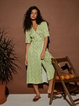 Платье рубашка прямого силуэта длиной макси. Линия плеча слегка спущена. Воротник отложной на стойке. По переду притачная планка с застежкой на 10 петель и пуговиц. По линии груди вытачки. В боковых швах карманы. По линии талии пояс в тон ткани. По верхней части спинки притачная кокетка, нижняя часть со встречной складкой. Рукав втачной, короткий понизу манжета с патой на пуговицу.