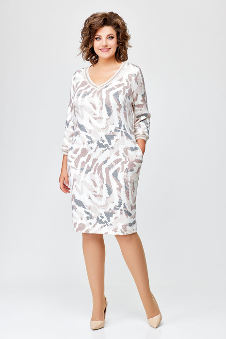 Совместные покупки Каменск-Уральский Женская одежда Платья — Платье Swallow 686.1 молочный+принт бежево-серый дизайн