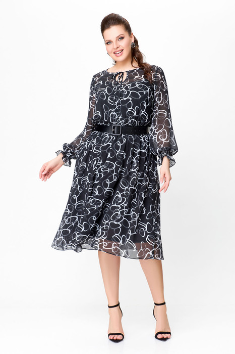 Платье Swallow 715.1 черный+принт молочные круги