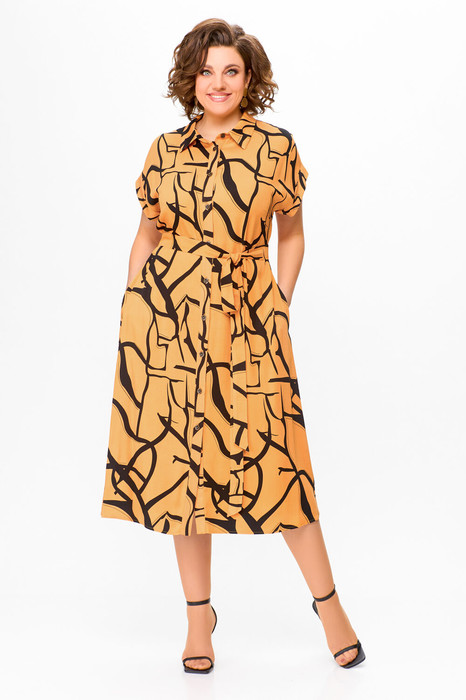 Платье Swallow 740 светло-оранжевый+черный принт