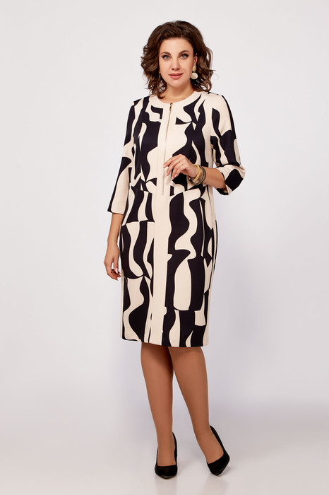 Платье Swallow 798 бежево-черный принт