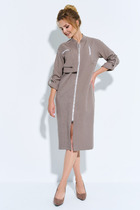 Платье свободного кроя отрезное выше линии талии (по переду и спинке) с декоративными планками. По линии подреза сборка. Спереди карманы, по лифу рельефы. Сквозная застёжка с планками на петлю и пуговицу. Рукав Вѕ с отворотом. Длина изделия 107 см.