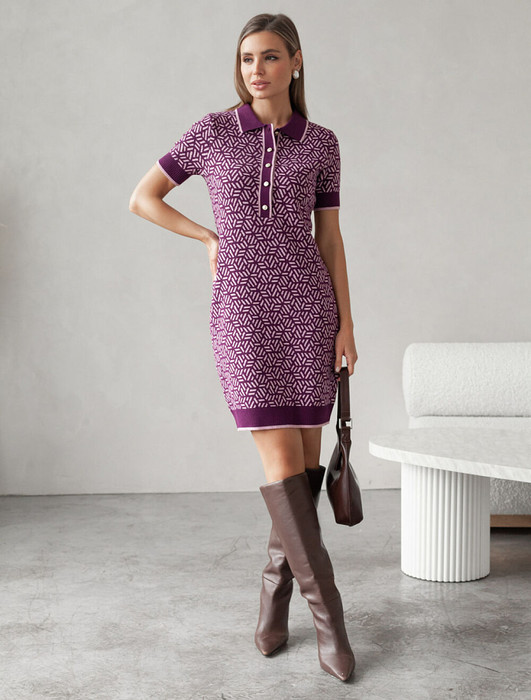 Платье жаккардовой вязки выполнено из нежной пряжи на основе вискозы с добавлением кашемира. Модель прямого силуэта с застежкой планкой как у поло. Фигурные золотистые пуговицы вносят изысканности и роскоши. Изделие приятно ощущается на теле и поддерживает комфортный микроклимат. Сочетается в комплекте total-look с жакетом D31.150